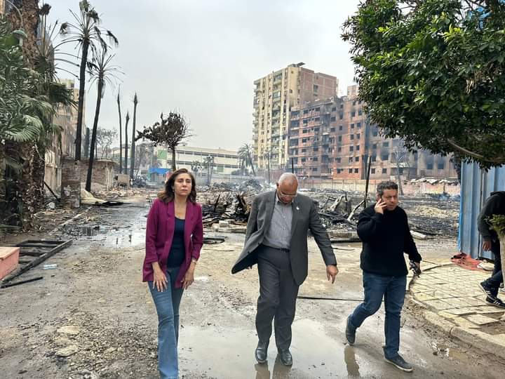 وزيرة الثقافة تتوجه إلى موقع حريق “الحارة الشعبية” بستوديو الأهرام
