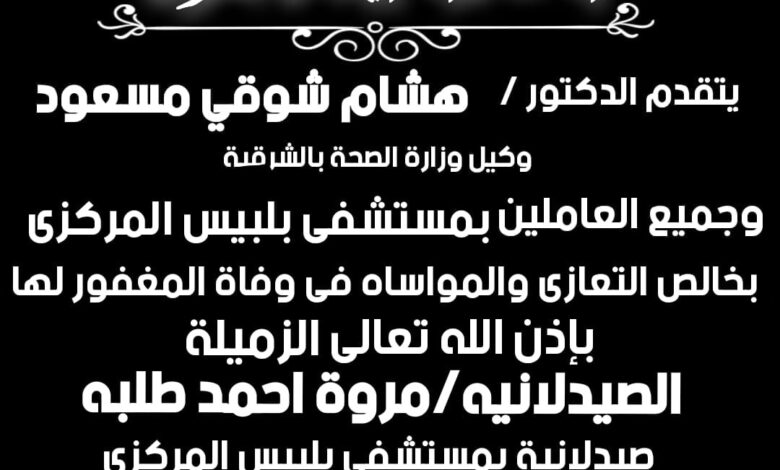 قام الدكتور هشام شوقي مسعود، وكيل وزارة الصحة بالشرقية، بتقديم واجب العزاء والمواساة في وفاة الدكتورة “مروه أحمد طلبه” الصيدلانية بمستشفى بلبيس المركزي.