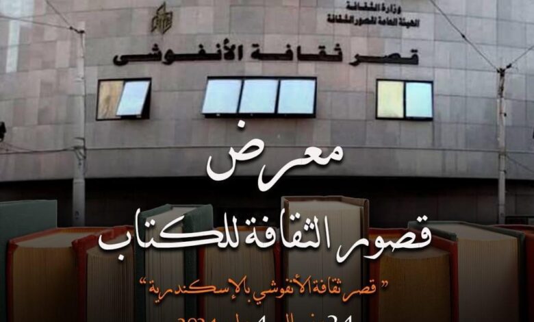 تقيم الهيئة العامة لقصور الثقافة معرضا للكتاب بقصر ثقافة الأنفوشي، غدا الاثنين، برعاية الدكتورة نيفين الكيلاني، وزير الثقافة، وضمن مبادرة وزارة الثقافة “ثقافتنا في إجازتنا”، ويستمر المعرض حتى 4 يوليو المقبل.