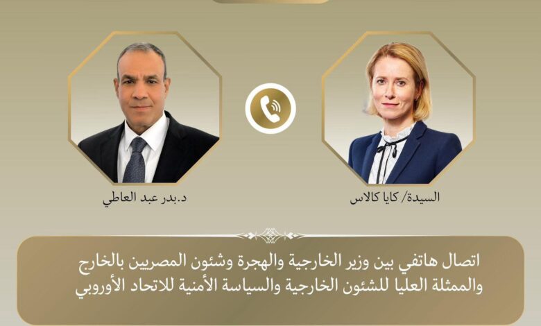 أجرى الدكتور بدر عبد العاطي، وزير الخارجية والهجرة وشئون المصريين بالخارج، اتصالًا هاتفيًا مع “كايا كالاس”، الممثلة العليا للشئون الخارجية والسياسة الأمنية للاتحاد الأوروبي، في إطار توجيهات الرئيس السيسي، بتكثيف الاتصالات الدولية لوقف إطلاق النار في غزة ودعم الجهود الإنسانية.