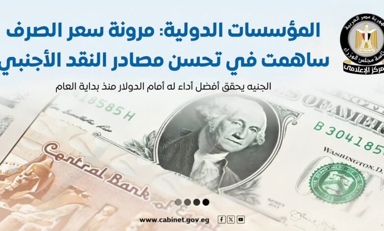 أعلن المركز الإعلامي لمجلس الوزراء أن الجنيه المصري حقق أفضل أداء له أمام الدولار منذ بداية عام 2025، في ظل إشادات دولية بمرونة سعر الصرف التي ساهمت في تعزيز استقرار سوق الصرف وزيادة تدفقات النقد الأجنبي.