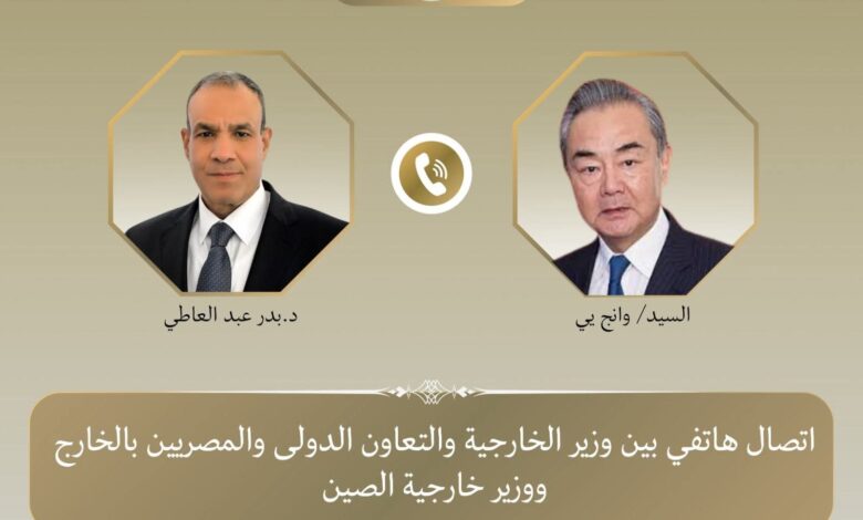 أجرى بدر عبدالعاطي، وزير الخارجية والهجرة والمصريين بالخارج، اتصالًا هاتفيًا، مع وانغ يي وزير خارجية الصين، لبحث سبل تطوير العلاقات الثنائية بين البلدين ومناقشة أبرز التطورات الإقليمية والدولية.