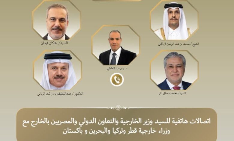 أجرى الدكتور بدر عبد العاطي، وزير الخارجية والهجرة وشؤون المصريين بالخارج، سلسلة اتصالات هاتفية مع عدد من نظرائه، شملت هاكان فيدان، ومحمد إسحاق دار، ومحمد بن عبد الرحمن آل ثاني، وعبد اللطيف بن راشد الزياني، وذلك لبحث تطورات الأوضاع الإقليمية المتسارعة وتنسيق الجهود المشتركة لخفض التصعيد، في إطار توجيهات القيادة السياسية بمواصلة جهود تهدئة الأوضاع الإقليمية.