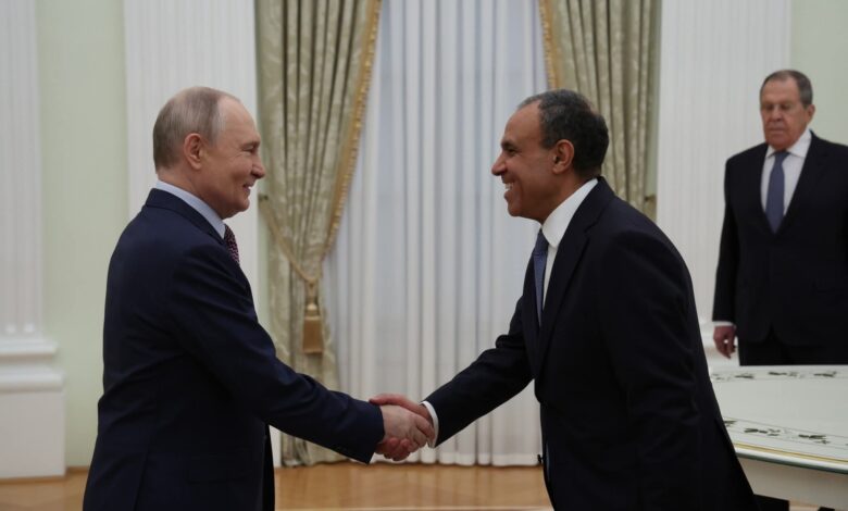 التقى بدر عبد العاطي، وزير الخارجية والهجرة وشؤون المصريين بالخارج، مع فلاديمير بوتين، اليوم الخميس، خلال زيارته الرسمية إلى العاصمة الروسية موسكو، وذلك لبحث سبل تعزيز العلاقات الثنائية ومناقشة أبرز القضايا الإقليمية والدولية ذات الاهتمام المشترك، بتوجيهات من عبد الفتاح السيسي.