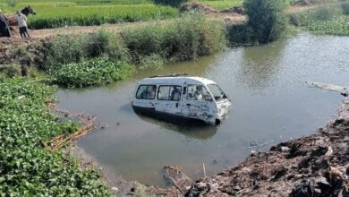 إصابة 7 أشخاص إثر تصادم سيارتين وسقوطهما بمصرف مائي في دمنهور