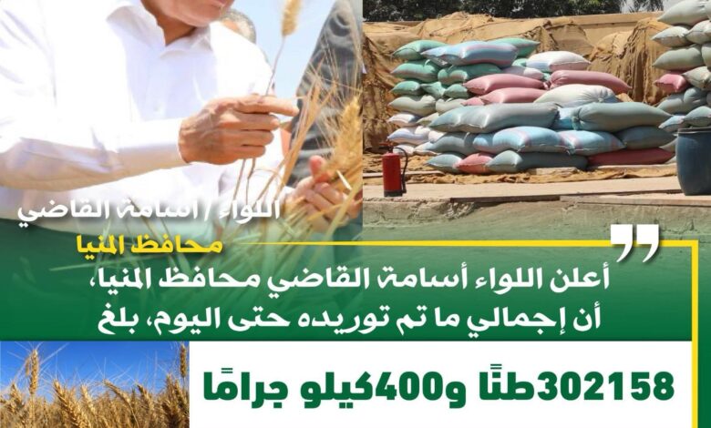 محافظ المنيا: شون وصوامع المحافظة تواصل استقبال القمح وتوريد 302 ألف طن منذ بدء الموسم